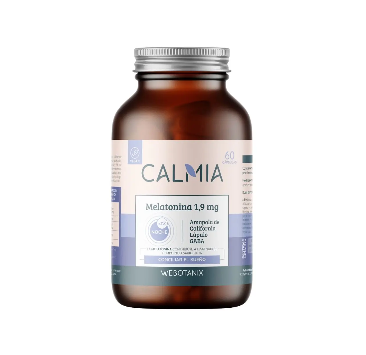 INGREDIENTES: Extracto seco de Amapola califórnica (Eschscholzia Californica-parte aérea) 0,2% de alcaloides, extracto seco de Lúpulo (Humulus lupulus-flor) 4% de flavonas, proteína de cáñamo, ácido gamma-aminobutírico (GABA), agente de carga (celulosa microcristalina), antiaglomerante (estearato de magnesio) y melatonina. Cápsula: Agente de recubrimiento (hidroxipropilmetilcelulosa).